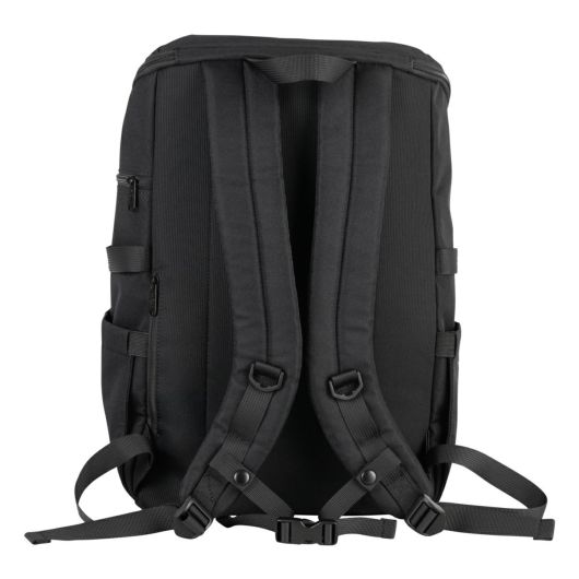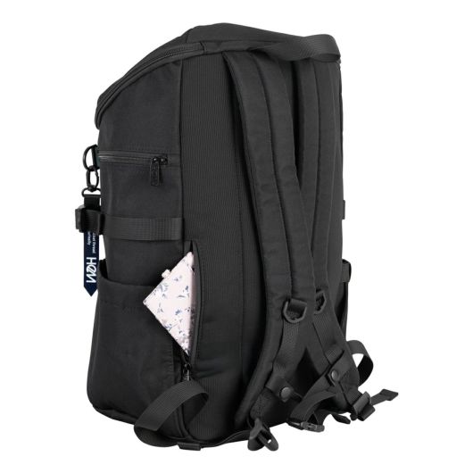 コラボモデルで人気の斜め型ボックスリュックをシンプルデザインにしました。大容量35L、新規で追加した側面のファスナーポケットがポイントです。内装PCポケットには4cmのマチがあるのでPCとタブレットやファイルなどをまとめて収納可。中がゴチャつかず整理整頓がしやすくなっています。