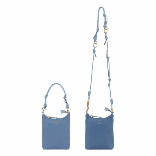 単体でも使えるハンドストラップと、ロングショルダーにスマートフォン用のプレートとポシェット部分を加え、多機能にしたスマホショルダーバッグ「コロレ」シリーズ。結び目デザインがシンプルで大人可愛く、バイカラーの裏地もポイントです。