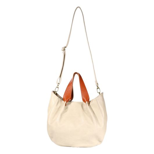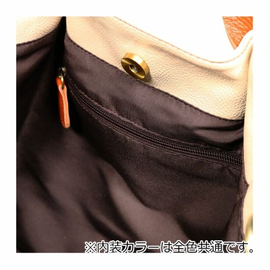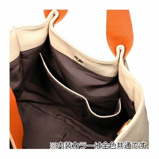 バッグ本体とハンドルを配色で切り替えたカラーミックスがポイントとなっています。しっくりと肌に馴染む柔らかな素材とかわいらしい丸いフォルムが女性らしさを感じさせます。中にポーチが入っているバッグインバッグ仕様。ポーチ単体としてお使い頂くか付属のショルダーベルトを付けてミニショルダーバッグとしても使えます。ショルダーベルトは本体バッグに付けてショルダーバッグとしても使用できる機能性の高いバッグです。B5サイズはもちろん、タンブラー500mlや小物もしっかり収納できます。