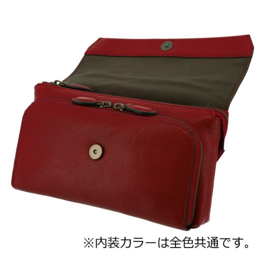 これ一つでどこへでもお出かけ♪お財布機能付きミニショルダーバッグ!艶のあるゴート革を使用した軽量で実用的なショルダーバッグは、発色の良いカラーリングで、いつものスタイルに華やかさをプラス。シンプルデザインで、幅広くどんなスタイルにも合わせやすいので、プレゼントにもぴったり♪