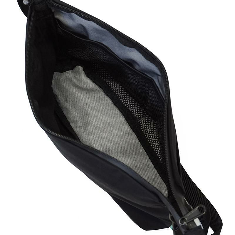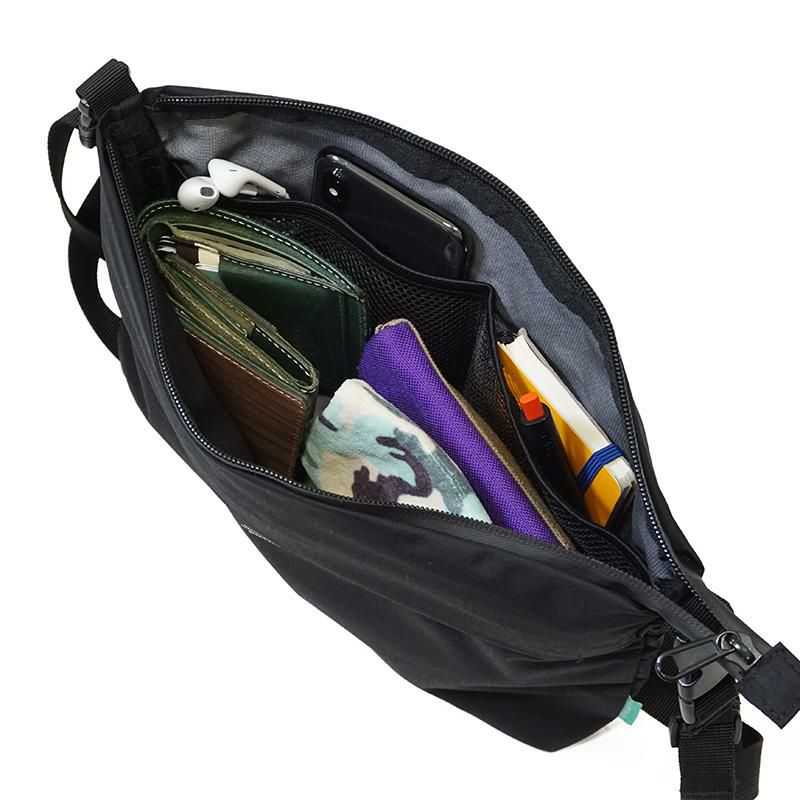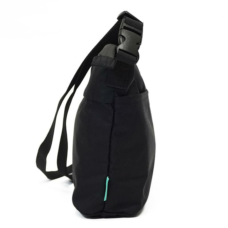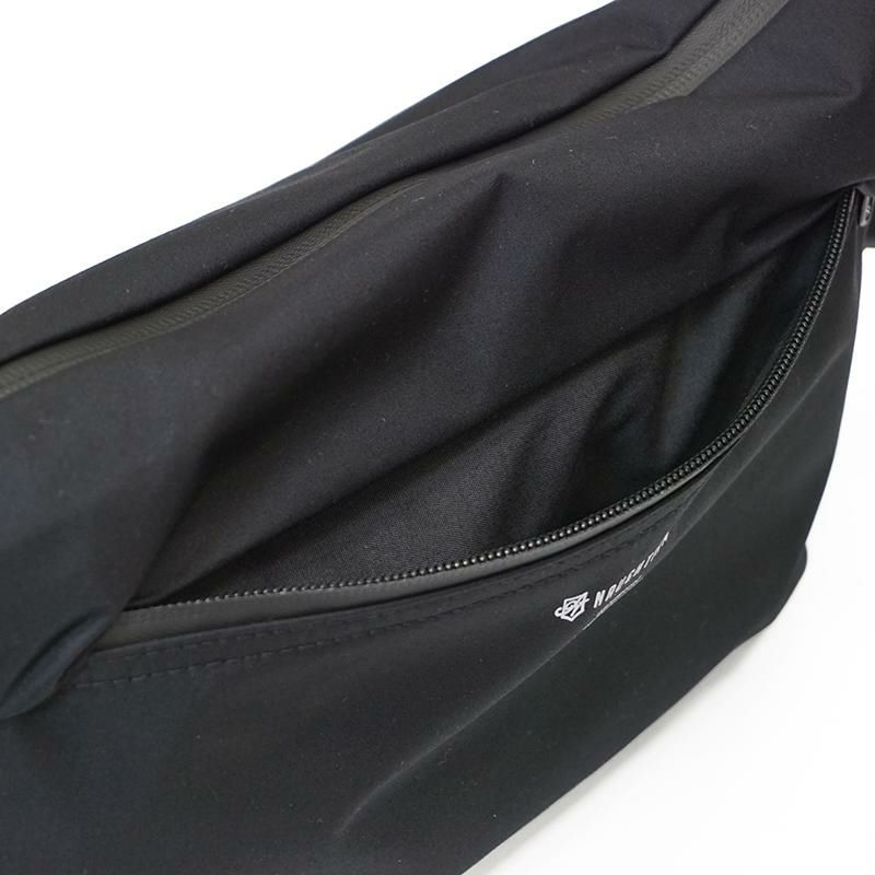 レインウェアなどのアウターに使われることが多いブリザテックナイロンを使い、更に止水ファスナー仕様にすることで防水性の高いバッグを作り上げました。