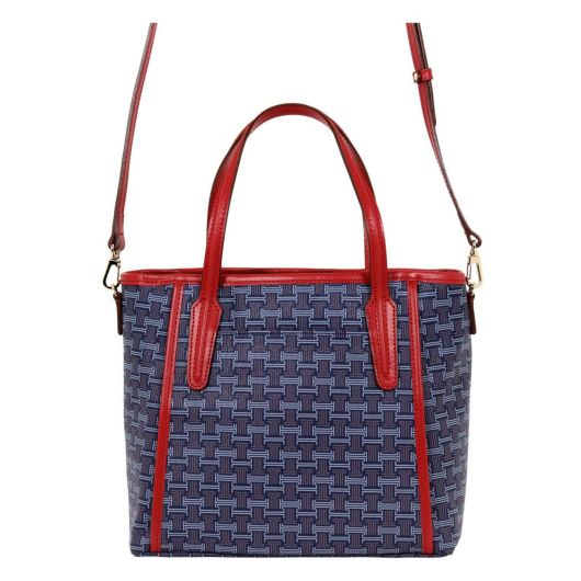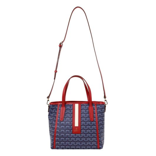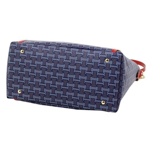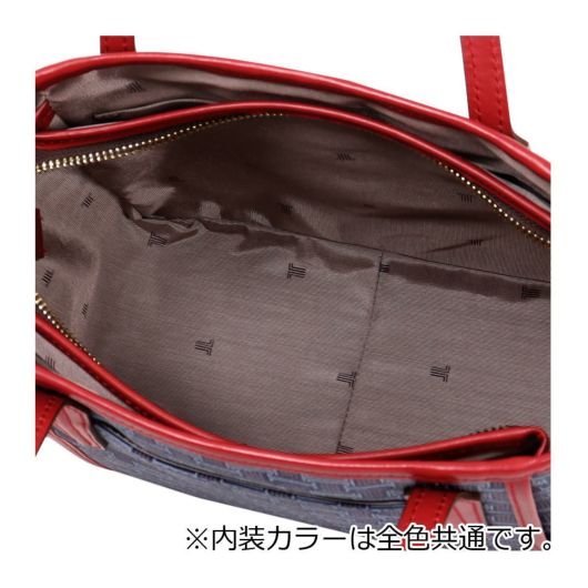 ブランドロゴを総柄で落とし込んだキャッチーなシリーズ“フェリア”。使い易いサイズ感のトートバッグで、付属のショルダーストラップでショルダーバッグにもなり2wayの使い方ができます。バイカラーのレザーパネル部分がアクセントとなって、全体を上品に引き締めています。お買い物やデート、普段使いのカジュアルシーンはもちろん、ビジネスシーンでも活躍してくれる、使い勝手の良さが自慢の1品。