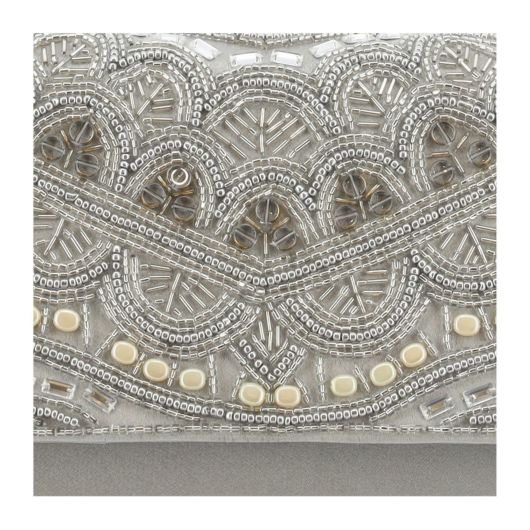 艶やかなガラスビーズがアクセントのビーズ刺繍フラップクラッチ。