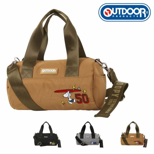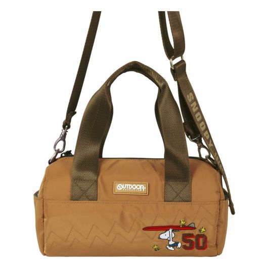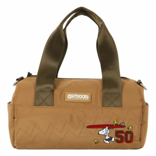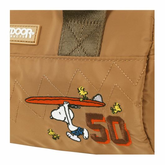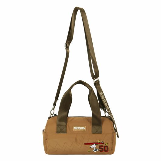 フロントにスヌーピーの刺繍をデザインしたロール型ミニダッフルバッグ