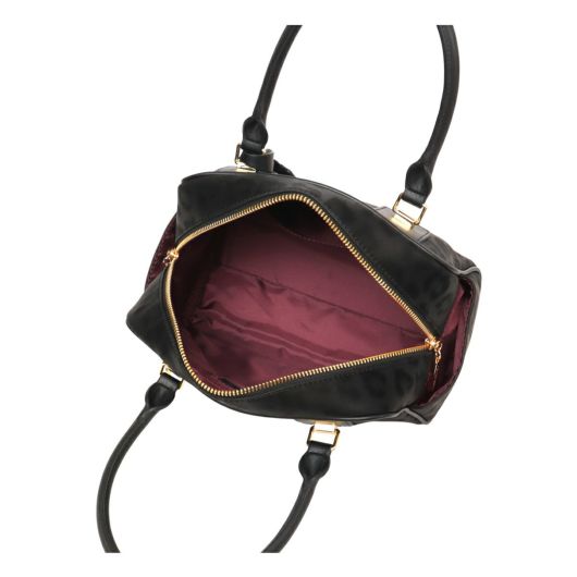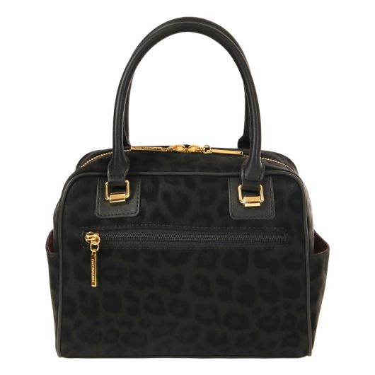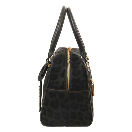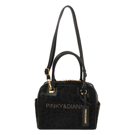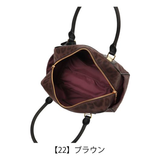 ソフトで手触りの良いヒョウ柄素材を贅沢に使った高級感あふれるシリーズ。トーンオントーンの配色なのでインパクトが強めに見えがちなヒョウ柄も、シックで洗練された印象にしあがっています。大きめにいれたロゴの刺繍もポイントです。小さめながら収納力があり、カジュアルに持てるPINKY&DIANNEらしいボストンバッグです。