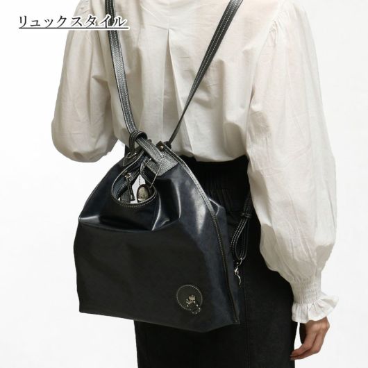 シュッとショルダーを引っ張るだけでリュックにできる3WAYバッグです。他にはトート持ち、斜め掛けでお使いいただけます。