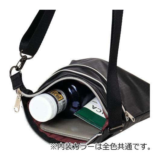 500mlのペットボトルが入るコンパクトなポシェット。洗濯可能で軽量なので旅行やお出かけに最適です。