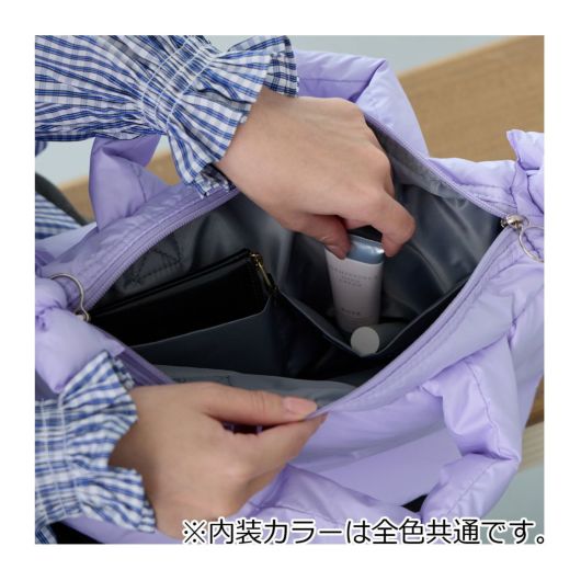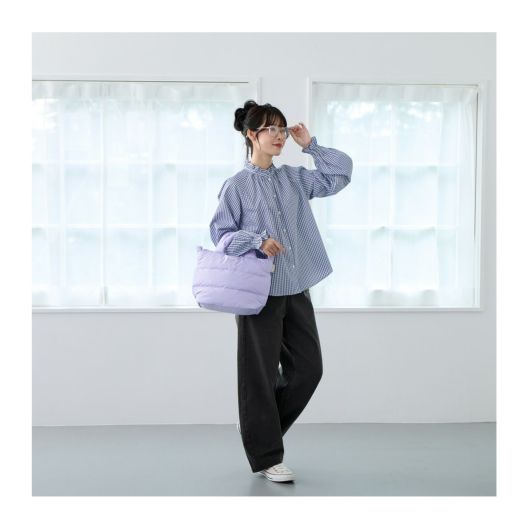 インナーに羽毛を使用したフェザールー。持ち心地の良さはもちろん、サイズもリニューアル。明るいポップなカラーのデリはふわふわショルダー付き。持ち心地のよい新しいフェザールーのカタチです。
