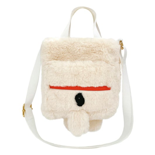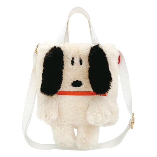 手触りの良いもふもふスヌーピー。まるでぬいぐるみを連れてお出かけしているよう。ちょっとそこまで”こでかけ”のおともに。トートバッグとしてもショルダーバッグとしても。
