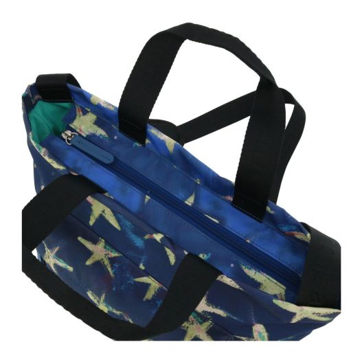 ファスナーを開けるとポップな色遣いの裏地が可愛く、ネーム入りのテープもポイントです。