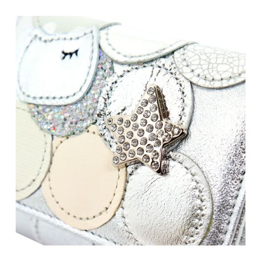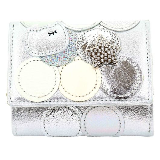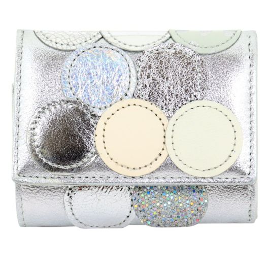 エナメル・ドットプリント等様々な素材の革を丸い型でパッチワークした「新マルチドット」シリーズのミニウォレットです。キラキラのマルチドットにラメの星飾りがとってもキュート。可愛くガーリーなアイテムなのでファッショナブルに組み合わせができます。