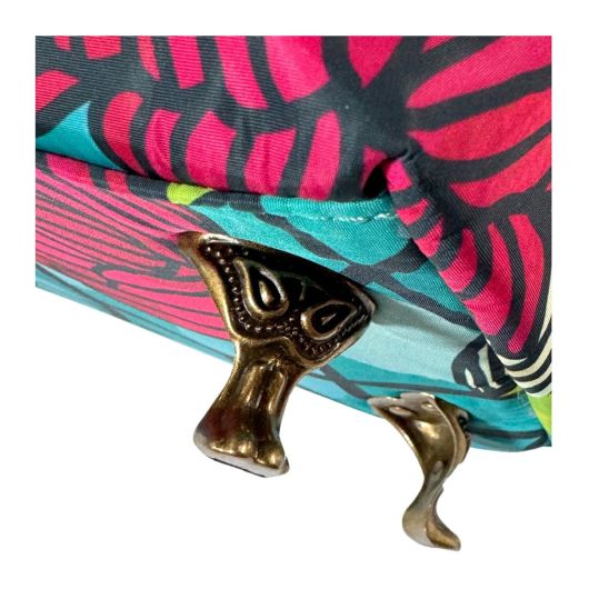底鋲のデザインはネコ足、バッグを床に置いた際は底面の接地を抑えられ清潔に、かわいさだけではなく機能面も考えたデザイン。金具や生地など、いたるところにネコ要素が入っているので探してみてください!