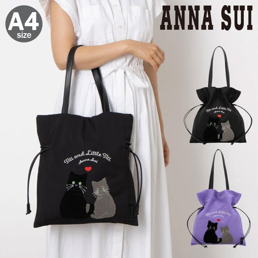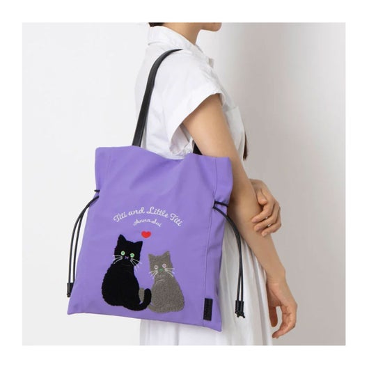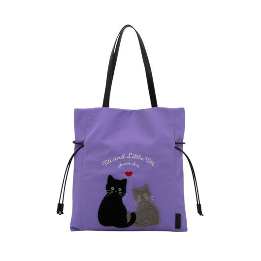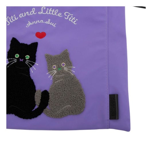 NNA SUI(アナスイ)の人気ネコキャラクター「TITI」が主役の『デイリーTITI』シリーズが登場。ふっくらとした立体感のある刺繍で表現されたTITIが、まるでバッグの中に住んでいるかのような愛らしさ。パイル素材のように見える柔らかな手触りが、視覚にも触感にもやさしく、ハートや文字の刺繍もさりげないアクセントになっています。