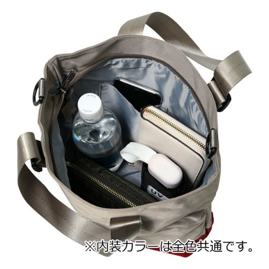 バイカラーがおしゃれな小さめ2WAYトートバッグ。取り外しの出来るショルダーと持ち手はお好みの長さに調節が可能。表地ははっ水性のあるナイロン、裏地には日光や蛍光灯などの光が当たることにより消臭抗菌の力を発揮するデオドラントネームが縫いこまれています。しっかりとした色味で表情はシンプルなので色々な場面でご使用できます。