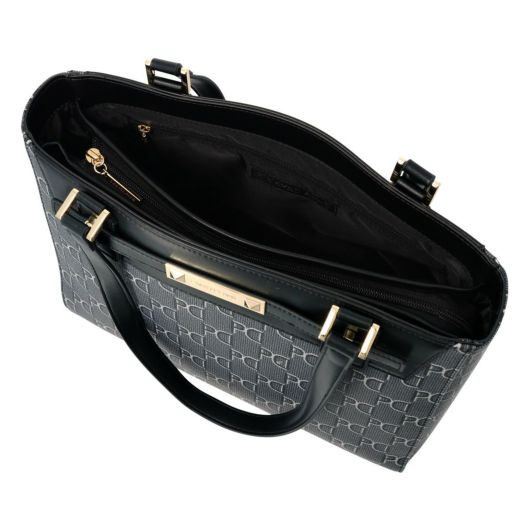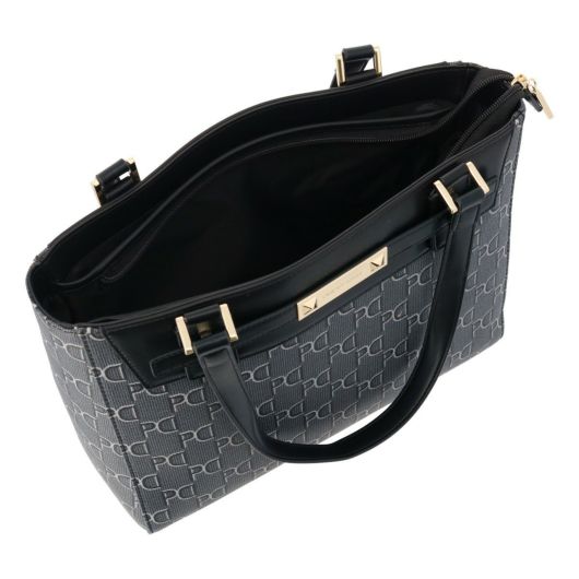 ベーシックなPD柄が新鮮なPVCのピラミッドシリーズ。中央にあしらったブローチが目を引くPINKYらしいデザインで使いやすいサイズバリエーションに仕上がっています。