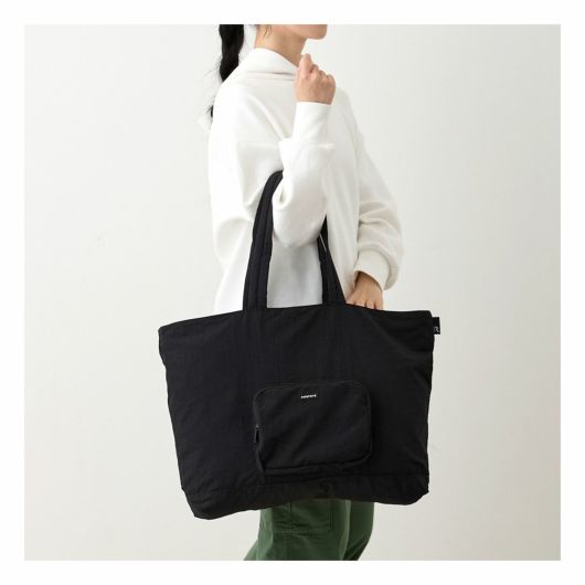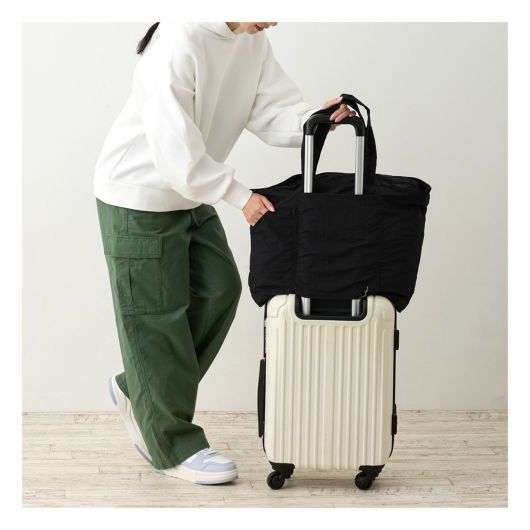コンパクトに持ち運べてさっと広げて使える、フレキシブルなグランデパッカブル。収納力たっぷりで、肩掛けはもちろん、ハンドルは女性が手で持っても床に届かない程良い長さ。