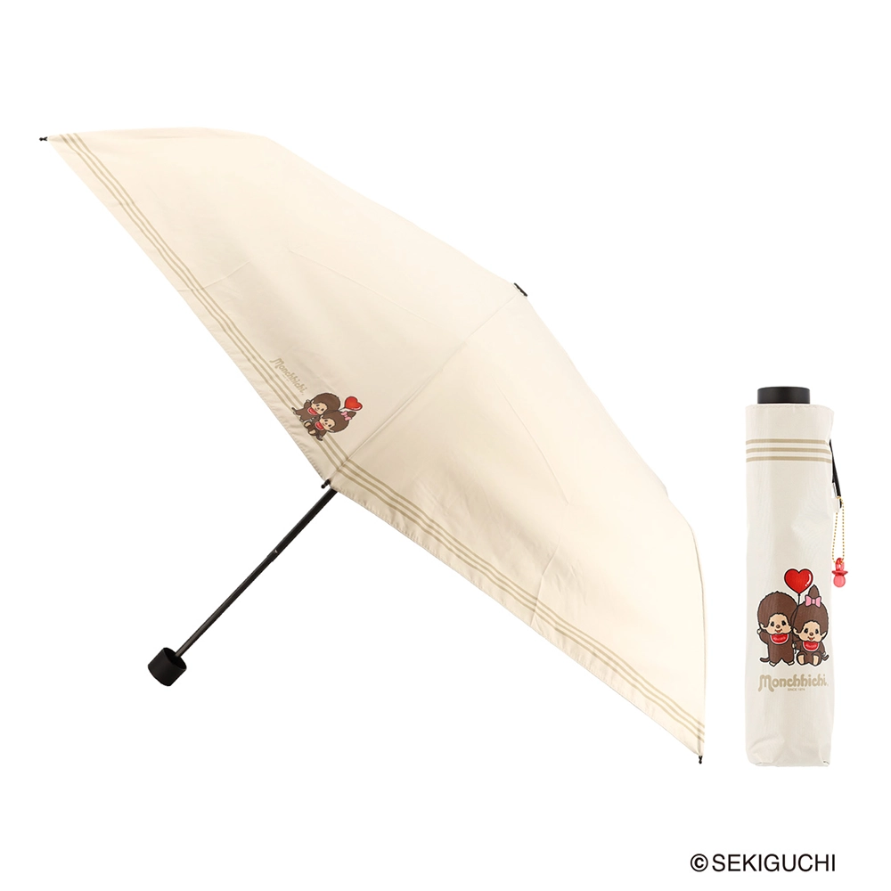 UVカット99.9%以上・遮光率99.99%以上という高い数値を備えながら、モンチッチのおしゃぶりチャーム付き専用袋が同梱されるサックスバー別注モデルです。骨には軽さと強度を両立するポリカーボネートを採用しています。キャラクターものでありながら実用性がしっかりしているので、自分用にはもちろん、モンチッチ好きな方へのプレゼントとしても喜ばれる一本です。