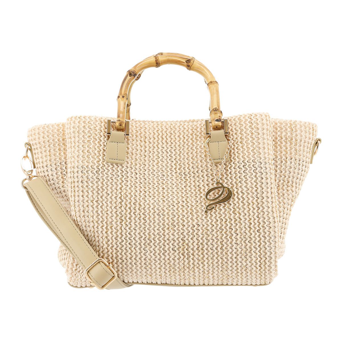 【ベージュ色のバッグ】知的で優しい印象を与える