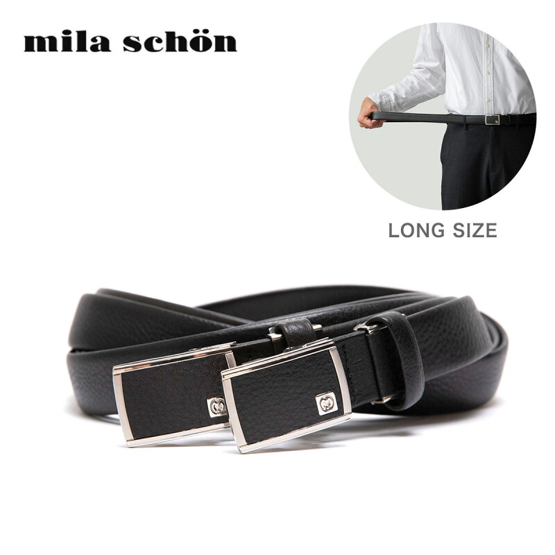 スーツスタイルから、キレイ目のカジュアルスタイルまで幅広くお使いいただけるデザインで、控えめながら身につける人をスタイリッシュに引き立たせてくれます。ボックスタイプのバックルには、ミラショーンロゴをさりげなくあしらっており、コストパフォーマンスの高さも魅力的な1本です。年齢を問わず、ギフトとしてもおすすめのアイテムです。