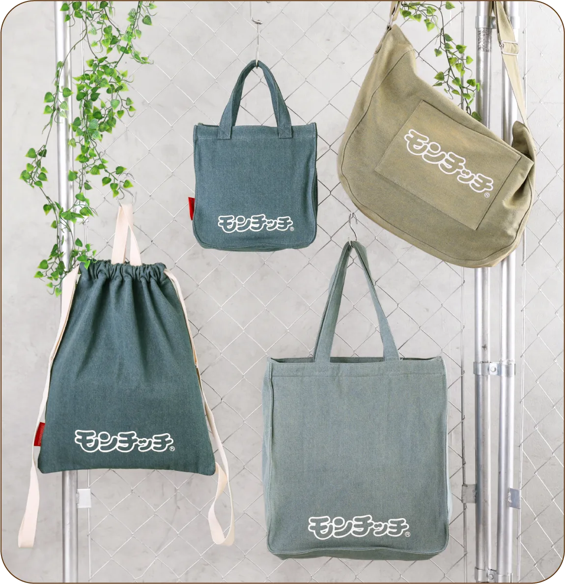 裏側はモンチッチのロゴがなんともレトロな表情を醸し出しています💚 フェイス側で視線が集まりすぎて困ったらこちら側を正面に持つのもアリですね♪
