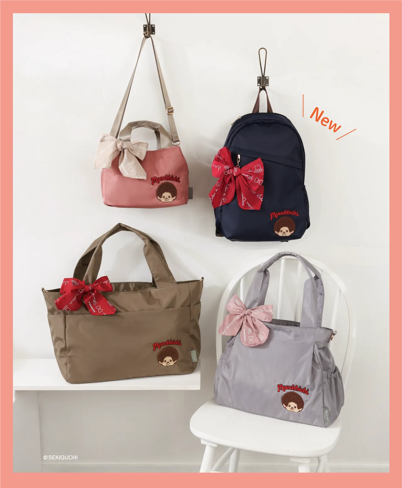モンチッチのサガラ刺繍とリボンがガーリーな人気シリーズ🎀 A4サイ ズが収まるリュックが登場!ポケット豊富でかわいいだけじゃない使えるリュック◎