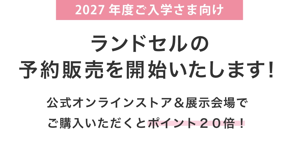 2027年度ご入学向けランドセル特集🎒 なんとポイント20倍!今だけのチャンスをお見逃しなく!