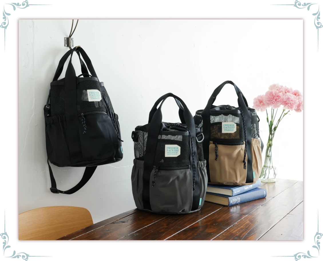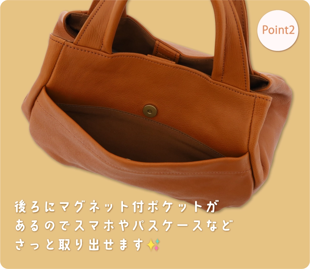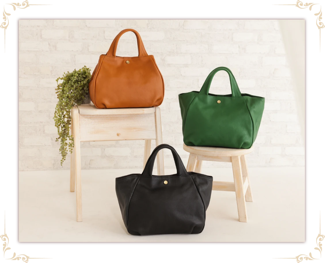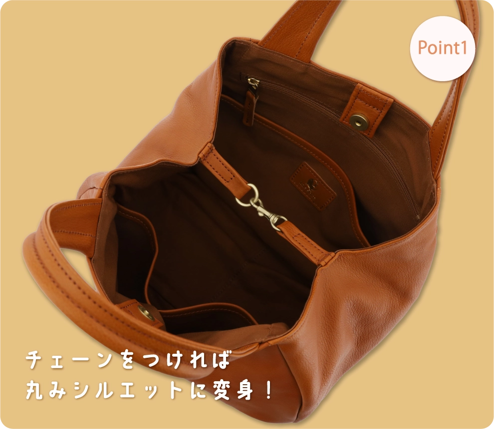 自由に形を変えられるレザートートバッグ