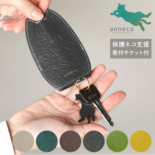 アオネコ キーケース キーカバー キーリング キーチャーム レディース 日本製 an006 aoneco 保護ネコ支援 寄付チケット付 チャリティー waji 本革 レザー 日本製 ネコ 猫 アニマル 縁起 風水 お祝い ギフト プレゼントのレビュー