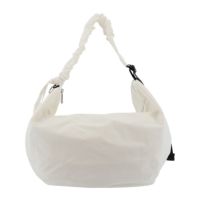 編み目のデザインがとても可愛いです 柔らかくて、ちょうどいい大きさで、使いやすいです キャメルにしました スタッフさんコーディネートみたいに紐を短くするとまた違う印象になりますね -